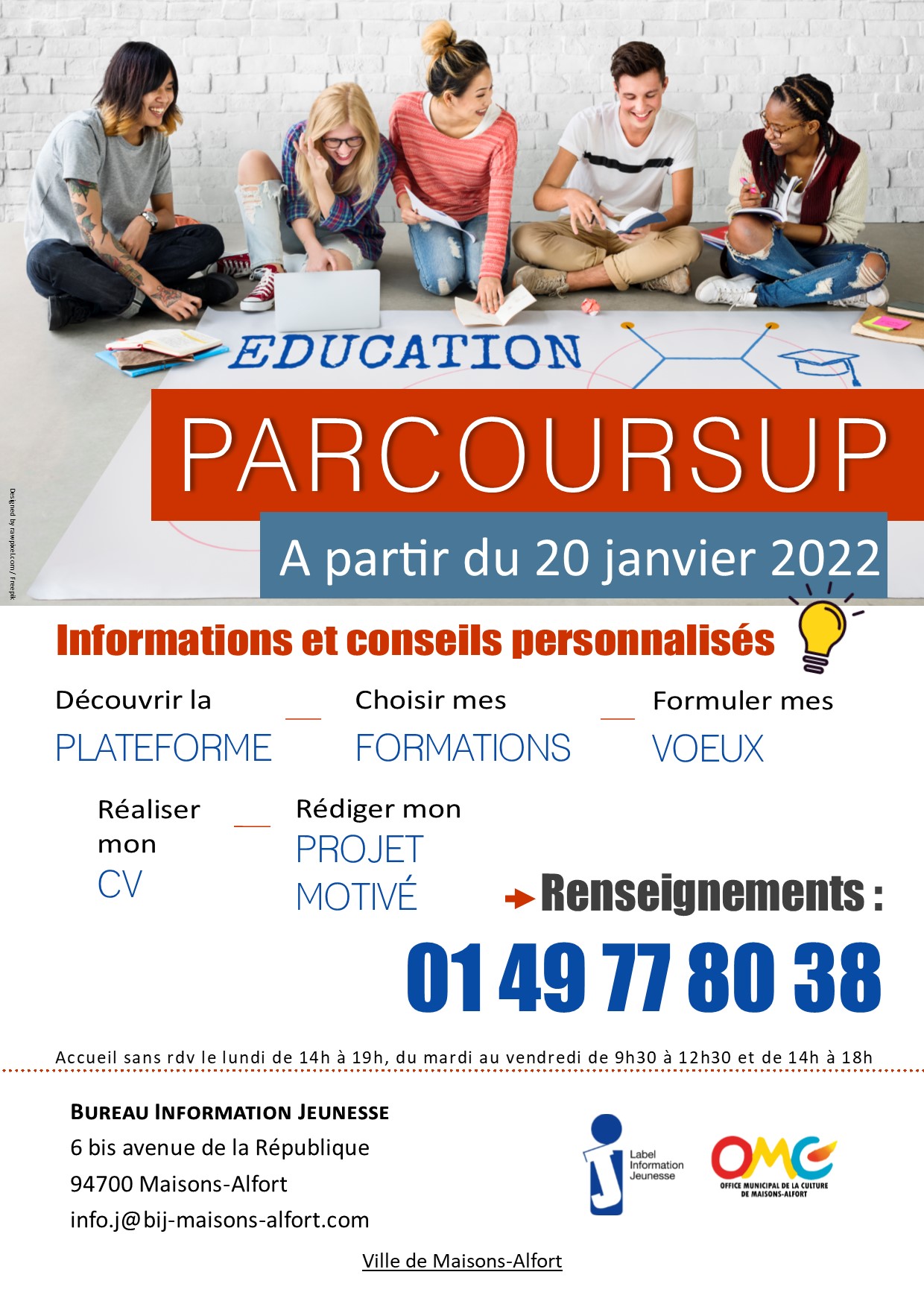 Renseignements au 01 49 77 80 38 ou formulaire de contact